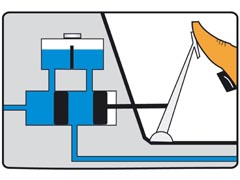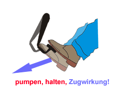 - Pedal muss hinuntergezogen werden (ca. 2 cm)