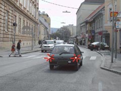 3. Leicht und gleichmäßig bremsen und am Ende des Bremsvorganges