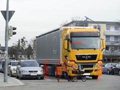 Durch die große Massenträgheit verliert das Fahrzeug nur langsam an Fahrgeschwindigkeit (durch Schubabschaltung des Motors wird kein Kraftstoff verbraucht)!