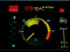 Durch Leuchtdioden (variabler Drehzahlmesser) oder Feldeinteilungen im Drehzahlmesser wird der wirtschaftliche bzw. der ideale Drehzahlbereich beim Einsatz der Dauerbremsanlage angezeigt.