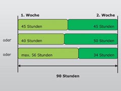 in einzelnen Wochen 60 Stunden. Durchrechnung: 17 Wochen