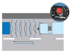 am Heck des Vorausfahrenden reflektiert und vom Sensor wieder empfangen.
