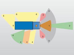 Mit Hilfe dieser Sensoren wird das Umfeld um das Fahrerhaus (Radiusbereich